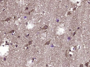 多聚甲醛固定,石蜡包埋(人脑胶质瘤);用柠檬酸钠缓冲液(pH6.0)煮沸15min后提取抗原;用3%过氧化氢阻断内源过氧化物酶20分钟;阻断缓冲液(正常山羊血清)37℃30min;抗体孵育(磷糟)(SER118))多克隆抗体,未结合,1:400,4°C下过夜,然后根据SP试剂盒(兔子)说明和DAB染色进行操作。