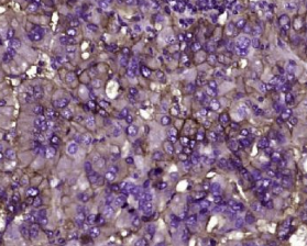 多聚甲醛固定,石蜡包埋(人肝癌);用柠檬酸钠缓冲液煮沸(15分钟)提取抗原;用3%过氧化氢阻断内源性过氧化物20分钟;阻断缓冲液(正常山羊血清)37℃30分钟;抗体孵育(β2 MI)未结合的球蛋白(B2E5)单克隆抗体,1:400,4°C下过夜,然后根据SP试剂盒(小鼠)说明和DAB染色进行操作。