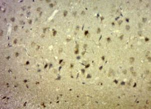 多聚甲醛固定,石蜡包埋(大鼠脑);经柠檬酸钠缓冲液(pH6.0)煮沸15min后获得抗原;用3%过氧化氢阻断内源性过氧化物酶20分钟;阻断缓冲液(正常山羊血清)37℃30min;用phospho Bcl xL(Trac47)进行抗体孵育未结合的多克隆抗体在1:500下在4°C下过夜,然后结合二级20分钟,DAB染色。