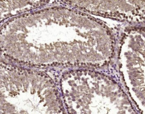 多聚甲醛固定,石蜡包埋(大鼠睾丸);经柠檬酸钠缓冲液(pH6.0)煮沸15min后获得抗原;用3%过氧化氢阻断内源过氧化物酶20分钟;阻断缓冲液(正常山羊血清)37℃30min;用磷酸-B-RAF(Sel36)进行抗体孵育5))未结合的多克隆抗体在1:500下在4°C下过夜,接着是结合的二级20分钟和DAB染色。